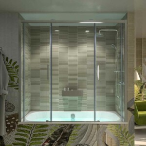 Façade de baignoire avec deux fixes et deux coulissantes.