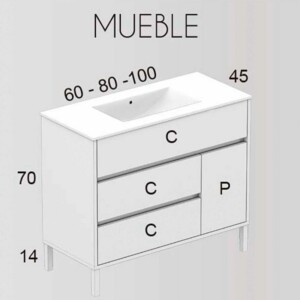 Vous pouvez également modifier la largeur des mesures, qui peut être de 60 , 80 ou cm x 45 cm de profondeur et 84 cm de hauteur.
