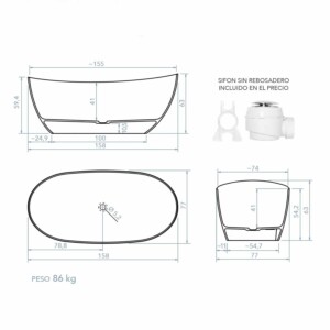 - La baignoire ovale autoportante CLOE en solid surface est vendue uniquement dans certaines dimensions. S’ils conviennent à votre salle de bain et à ce que vous recherchez, alors super, n’hésitez pas. Il mesure 158 cm de long x 77 cm de large x 59,4 cm de haut.