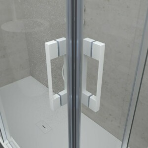 - Les profilés de cet écran de salle de bain sont en aluminium anodisé blanc mat, qui, avec les lignes raffinées et sa poignée assortie, donne une sensation d’espace et de lumière à laquelle il est impossible de résister.