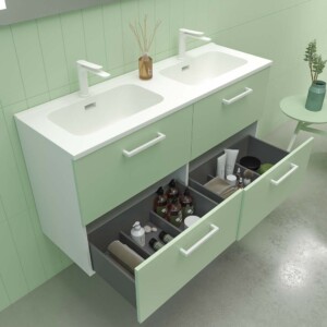 Mesures: Si vous avez besoin d’un grand meuble de salle de bain, NEXO de Varobath est le vôtre. C’est dans mesure 120 cm / 140 cm largeur x profondeur 45 cm x hauteur 60 cm. C’est un grand meuble de salle de bain adapté aux salles de bains un peu plus spacieuses. L’installation est suspendue avec des suspentes à haute résistance avec 3 réglages indépendants par l’avant. Supporte une charge jusqu’à 130 kg.