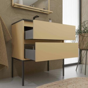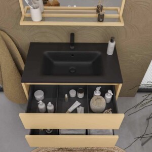 - Mesures entre 60 et 80 cm, une profondeur de 46 cm et une hauteur de 85 cm pour que vous puissiez l’intégrer sans trop de difficulté dans votre salle de bain.
