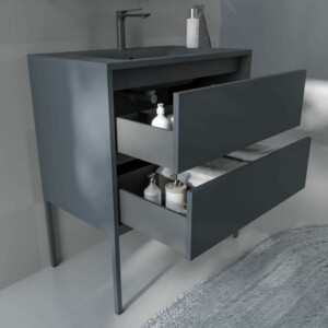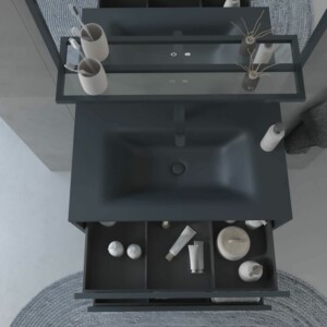 - tiroirs 2: les tiroirs ont un système Soft Closed pour une fermeture douce et amortie. De plus, l’intérieur des tiroirs est de couleur graphite. Il dispose également d’une poignée ergonomique intégrée.