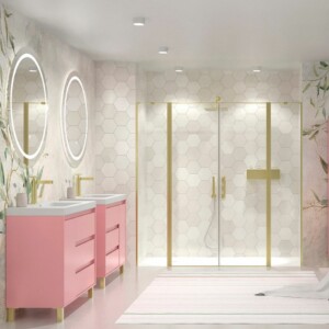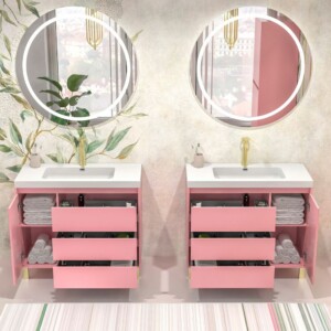 Meuble de salle de bain rose pâle de style moderne Carmen avec 3 tiroirs/ 1 porte par Varobath