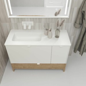 - Avec jambes : choisissez un meuble de salle de bain avec pieds si vous souhaitez un design attrayant et une stabilité totale pour votre meuble sous lavabo.