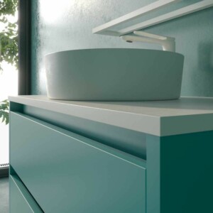 Soyez le premier à laisser votre avis sur “Meuble de salle de bain suspendu 2 tiroirs CLAIRE avec vasque en Solid Surface BLEU TURQUOISE”