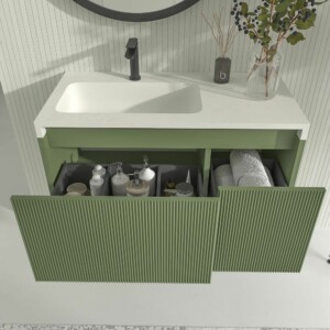 Les meubles de salle de bain suspendus avec tiroirs avec séparateurs sont idéaux pour ranger tous les articles de salle de bain en ordre. Les dimensions du meuble sont 90cm / 110cm de haut largeur x profondeur 45 cm x hauteur 40 cm.