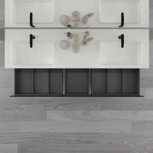 - Modules complémentaires: Plateau de séparation avec accessoires facilitant l’ordre et le confort dans la salle de bain