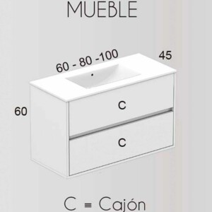 - Les mesures sont de 60, 80, 100 cm de large x 45 cm de profondeur x 60 cm de haut.