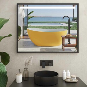 Le miroir de salle de bain EVO a un design super actuel. Vous allez l’adorer dans n’importe quelle couleur ! De plus, malgré son encadrement, il ne surchargera pas l’environnement, puisque son épaisseur est minimale : 2 cm.