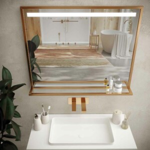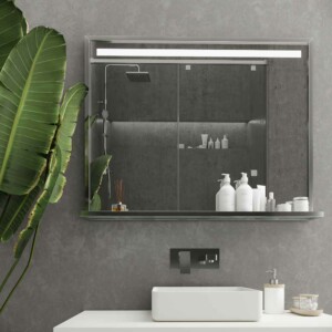 Ce magnifique miroir de salle de bain a un éclairage LED, vous devrez donc réfléchir à la façon dont vous allez éclairer la vanité ou le lavabo.