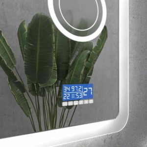 Comme vous pouvez le constater, il comporte de nombreux éléments optionnels pour faire de votre miroir un produit unique et différent. Par exemple miroir grossissant, haut-parleurs anti-buée ou Bluetooth, station météo, horloge.