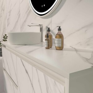 - Ajoutez vos meubles auxiliaires, colonne de salle de bain, luminaires ou miroir pour créer un environnement harmonieux et uniforme.