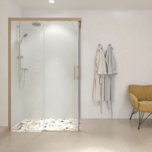 Cette option de paroi de douche angulaire est particulièrement recommandée pour les familles comprenant des personnes âgées : l’accessibilité est totale et sécurisée, et l’entretien quotidien est très simple. Sans aucun doute, un bon investissement.