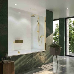 Pensez-vous que votre zone de baignade devrait être plus confortable et hygiénique? Avec le pare-baignoire rabattable Open, un Lame pivotante de 85 cm de large avec profil vertical aluminium doré scintillant, vous l’obtiendrez à coup sûr.