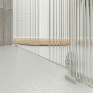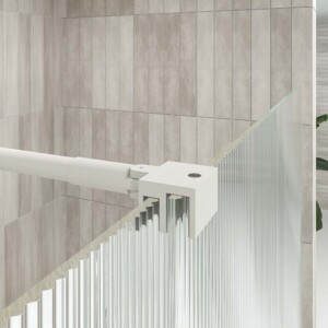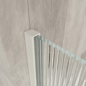 - El Le verre de sécurité trempé nervuré mesure 8 mm dans la partie coulissante et 8 mm dans le panneau fixe.