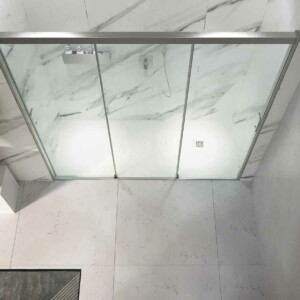Comment est ta salle de bain ? Est-elle large ou y a-t-il des obstacles qui rendent difficile l’accès à la douche ? Si l’espace est quelque peu réduit et qu’il y a des toilettes ou des meubles près de l’ouverture du paravent, le système de trois portes coulissantes avec ouverture des deux côtés est fortement recommandé pour votre cas. Lorsque les feuilles sont ouvertes, elles se cachent l’une derrière l’autre, laissant un espace d’entrée des deux tiers du trou total.