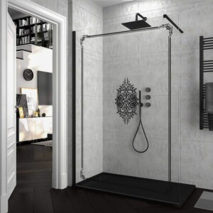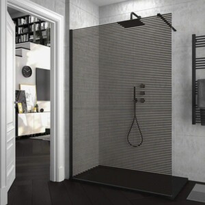 La paroi de douche fixe ZEN a Verre trempé de 8 mm d’épaisseur, un petit profilé mural en aluminium noir mat et un bras de serrage en acier extensible de 70cm à 100cm pour donner une plus grande stabilité à la paroi de douche. Les appareils de douche sont de belles solutions et fonctionnelles qui ont besoin de croître en amplitude visuelle.