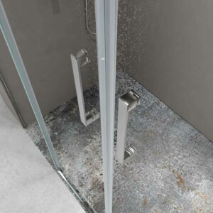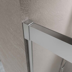 La paroi de douche BASIC dans sa composition la plus simple, en tant que panneau avant à quatre vantaux, deux fixes et deux mobiles avec une fermeture centrale, a une ouverture coulissante pratique et ses portes peuvent être dégagées du rail pour nettoyer facilement la paroi. Cependant, compte tenu de son esthétique ultra raffinée, il n’a pas de guide inférieur et les accessoires, comme la poignée, correspondent aux profils.