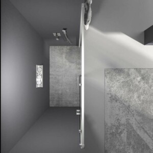 - Sa composition d’1 paroi de douche fixe et 1 coulissante permet de gagner de la place lorsqu’elle est petite ou peu encombrée.