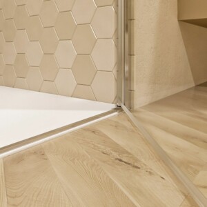 Profils disponibles en aluminium anodisé chrome brillant, également disponibles en variations de couleur. Profils conçus en lignes droites et allongées. Sans profils ni rails inférieurs, garantissant une entrée confortable sans marches, idéale pour les personnes âgées ou à mobilité réduite.