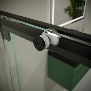La façade de douche PETRA couvre une large gamme de mesures de largeur (95-170 cm) et a une hauteur considérable (200 cm), ce qui empêche toujours les fuites d’eau et améliore la continuité visuelle lorsque le verre est incolore. Les roulements de ce modèle, également en acier, ainsi que sa poignée, donnent une glissement silencieux. Le vantail fixe n’a pas de guide inférieur et le vantail coulissant a un profil bas de 1 cm simplement pour assurer l’étanchéité et servir de guide à la porte.