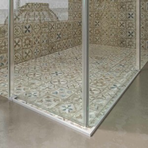 - Il manque un profil plus bas, qui offre confort et sécurité d’accès, en plus d’être plus hygiénique, puisque le calcaire ne s’accumule pas sur le rail.