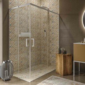 Sa double porte coulissante et ses parties fixes sont idéales pour une installation à proximité d’obstacles tels que les toilettes ou le lavabo, car aucun centimètre supplémentaire n’est nécessaire pour ouvrir la paroi de douche.