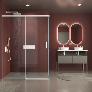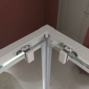 La paroi de douche angulaire BASIC a quatre feuilles de verre trempé de 6 mm d’épaisseur (pour le moment uniquement disponible dans une finition incolore), elle n’inclut pas de guide inférieur et elle inclut un anticalcaire en standard. De plus, parmi les nouveautés que ce modèle intègre, il y a des profils latéraux plus étroits et un design raffiné, ainsi qu’un système de montage très simple pour que tout client puisse placer sa nouvelle cloison à la maison s’il le souhaite.