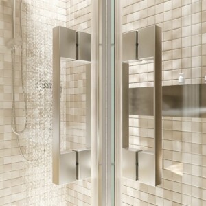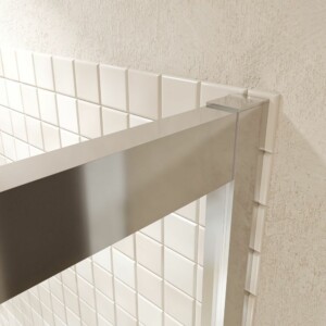 Les profils de cet écran de salle de bain sont en aluminium anodisé chrome brillant, qui, avec les lignes raffinées et sa poignée assortie, confère une sensation d’espace et de lumière à laquelle il est impossible de résister.