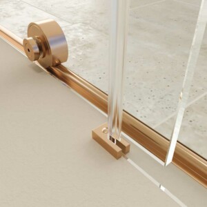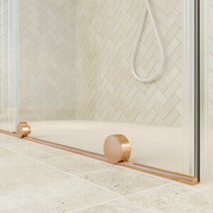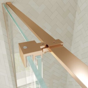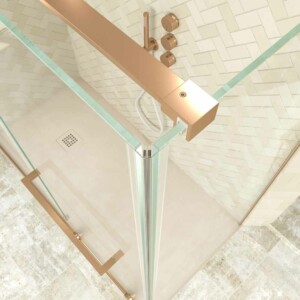 Avec un minimum de profils en cuivre mat, cette façade de douche dispense du profil supérieur et incorpore du verre trempé de 8 mm d’épaisseur. Solidité et résistance dans un produit qui parvient à créer chez l’observateur un impression complète de légèreté.