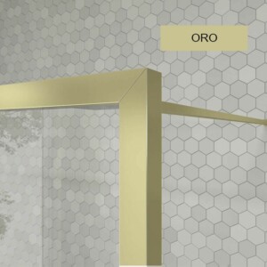 Su beau profilage minimaliste de seulement 2 cm (profilé mural et bras de serrage extensible) offre une détail unique et élégant à une cloison d’une seule feuille de verre incolore de 4 mm. avec traitement anti-calcaire inclus.