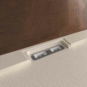 Le receveur de douche réalisé avec les résines modèles de dernière génération STYLE de couleur Blanc Crème, il présente un design moderne, avant-gardiste et unique. C’est la fusion entre une plaque lisse et une avec cadre. Il est fini en GEL COAT antibactérien et en texture ardoise. Peut être coupé en taille. La grille cache une grande vanne de débit.