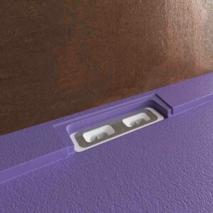 Le receveur de douche réalisé avec les résines modèles de dernière génération STYLE de couleur lilas, il présente un design moderne, avant-gardiste et unique. C’est la fusion entre une plaque lisse et une avec cadre. Il est fini en GEL COAT antibactérien et en texture ardoise. Peut être coupé en taille. La grille cache une grande vanne de débit.