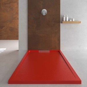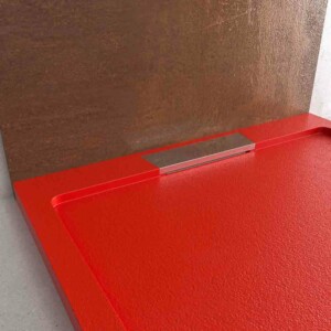 Le receveur de douche réalisé avec les résines modèles de dernière génération STYLE de couleur Rouge, il présente un design moderne, avant-gardiste et unique. C’est la fusion entre une plaque lisse et une avec cadre. Il est fini en GEL COAT antibactérien et en texture ardoise. Peut être coupé en taille. La grille cache une grande vanne de débit.