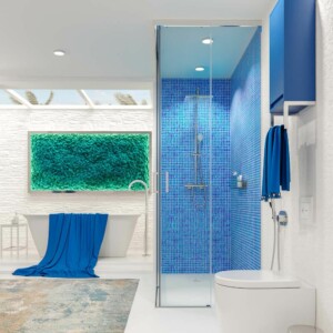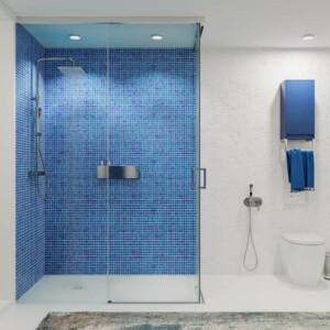 - Particulièrement adapté aux receveurs de douche dont la façade est supérieure à 120 cm, laissant un espace d’entrée minimum de 50 cm.
