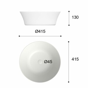 Il a une largeur de 41,5 cm, une profondeur de 41,5 cm et une hauteur de 13 cm. Les dimensions idéales pour le placer dans un meuble de salle de bain standard de pratiquement n’importe quelle taille.